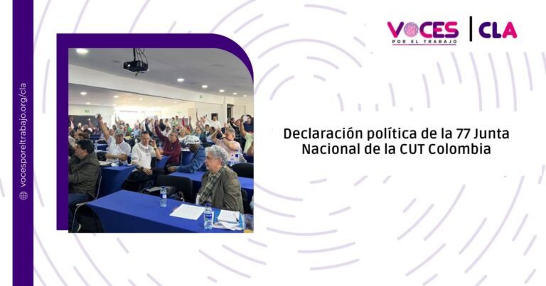 En un contexto de creciente polarización política, de que los partidos de derecha asuman cargos de representación en el mundo y obstáculos a las reformas sociales, la Central Unitaria de Trabajadores (CUT) trazó su hoja de ruta durante su 77ª Junta Nacional, celebrada en Bogotá los días 27 y 28 de febrero de 2025. Con la participación de 128 delegados de subdirectivas, federaciones y sindicatos … Sigue leyendo La CUT llama a la movilización: cuatro fechas clave para la lucha social en este semestre